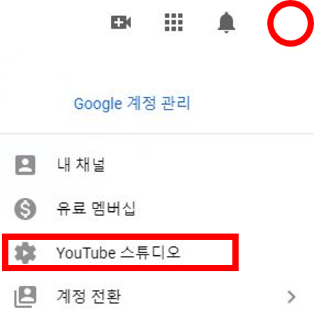 [ YouTube 스튜디오 ] 메뉴로 들어가 주세요.